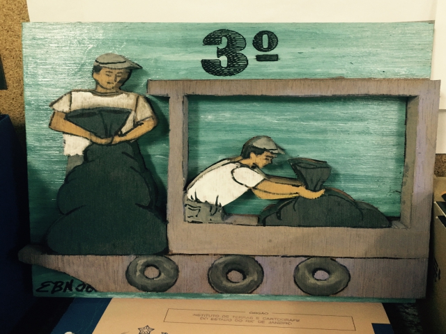 "O barco com a equipe do Iterj foi aquele que coletou a terceira maior quantidade de lixo e, como incentivo, ganhou um quadro feito 100% com material de reciclagem".